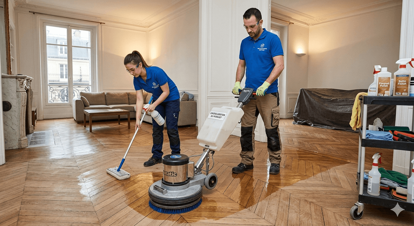 - Nettoyage des sols (carrelage, béton, parquet) après travaux