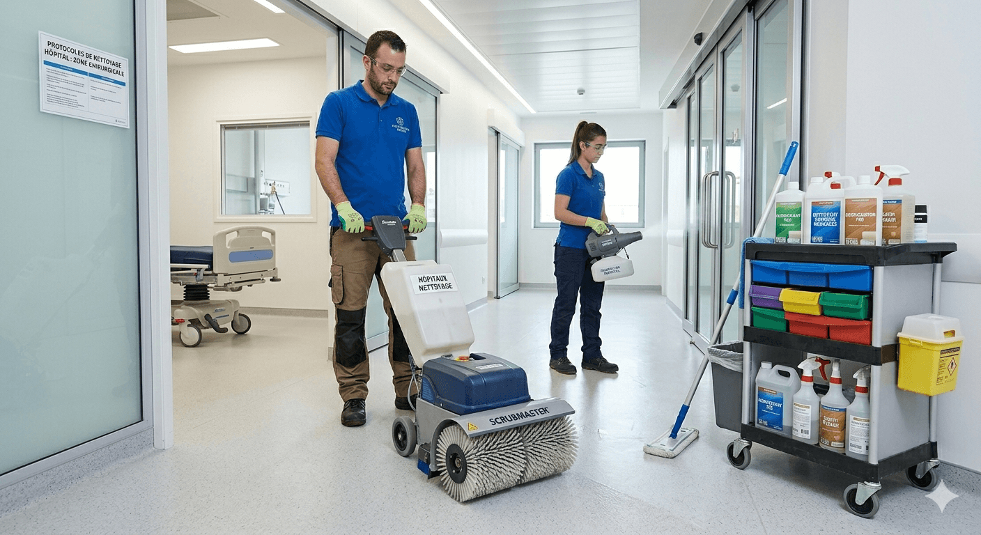 Protocoles stricts de désinfection pour garantir une hygiène irréprochable dans les établissements de santé.