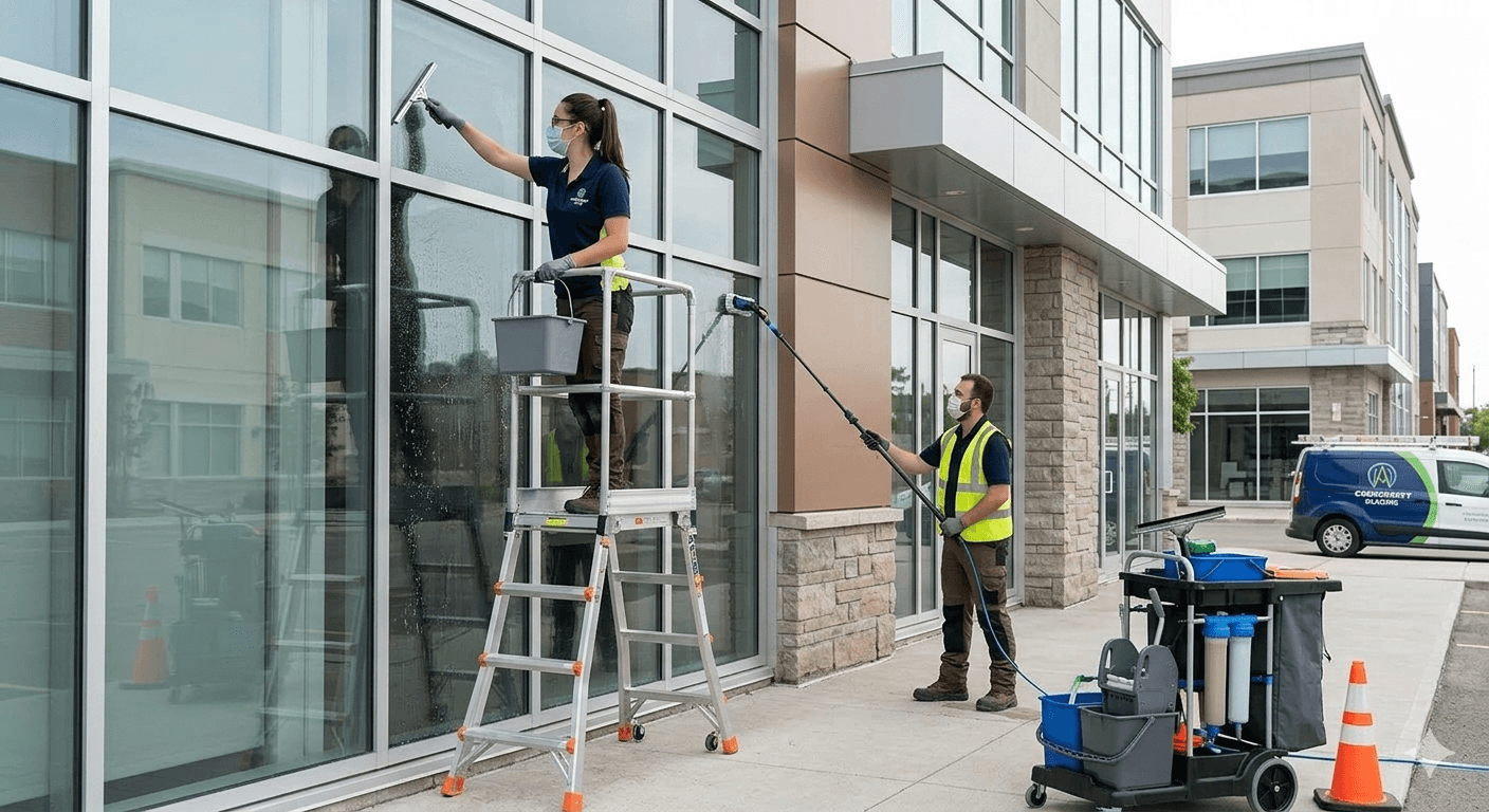 Nettoyage spécialisé pour redonner éclat et transparence à vos bâtiments.